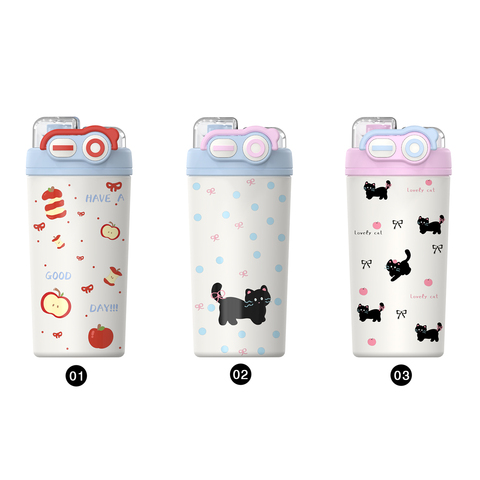 Bociya ถ้วยน้ำสแตนเลสน่ารักจับใหม่ถ้วยน้ำแข็งตั้งโต๊ะดีไซน์การ์ตูนฉนวนกันความร้อนสำหรับการเดินทางของผู้หญิง